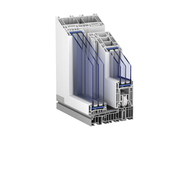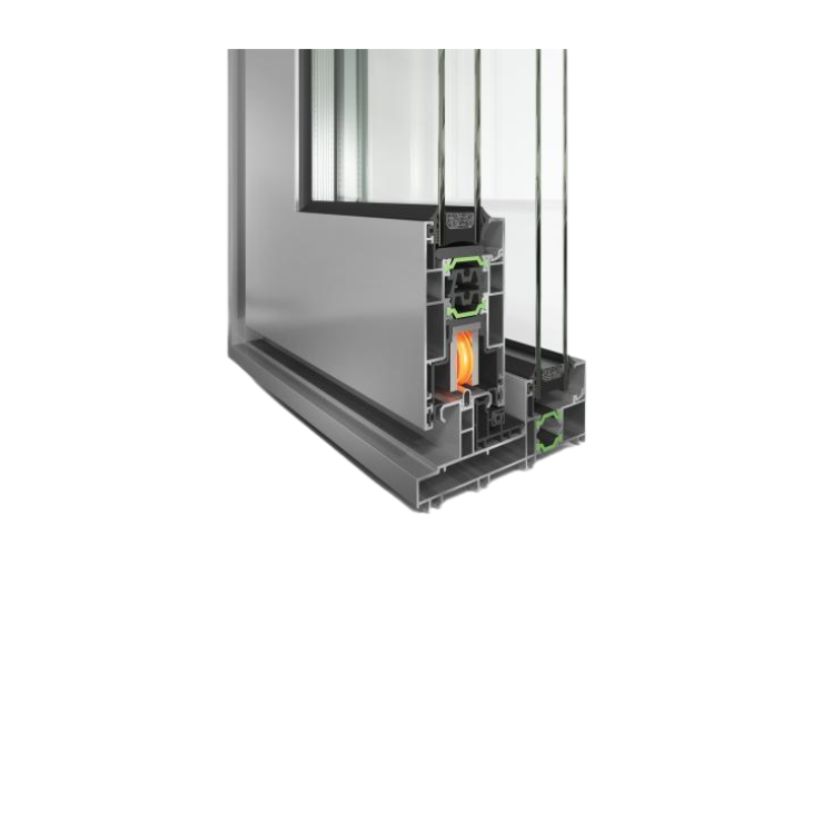 Il sistema di profili in alluminio con taglio termico, caratteristiche di sicurezza di base e ferramenta di sistema è disponibile in bianco e nei colori RAL. Offre la possibilità di installare un vetro isolante da 24 mm di spessore e può essere riempito con MDF, pannelli termici e componenti Hunter. Può raggiungere un coefficiente di trasmittanza termica Uw fino a 1,45 W/m²K.